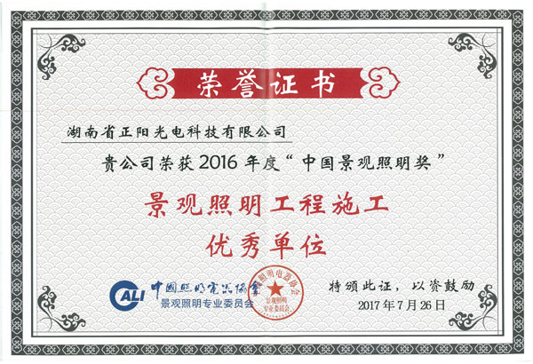 湖南省正陽光電科技有限公司是一家從事亮化工程及大型燈光藝術(shù)的設(shè)計、制作、安裝和維護于一體的專業(yè)化公司。公司資質(zhì)齊全、管理嚴(yán)謹(jǐn)、技術(shù)先進、實力雄厚,取得了城市及道路照明工程專業(yè)承包壹級資質(zhì)、照明工程設(shè)計專項甲級資質(zhì)、機電工程施工總承包貳級資質(zhì)、施工勞務(wù)等資質(zhì)、國家高新技術(shù)企業(yè)、國家“重質(zhì)量·守誠信”示范企業(yè)。